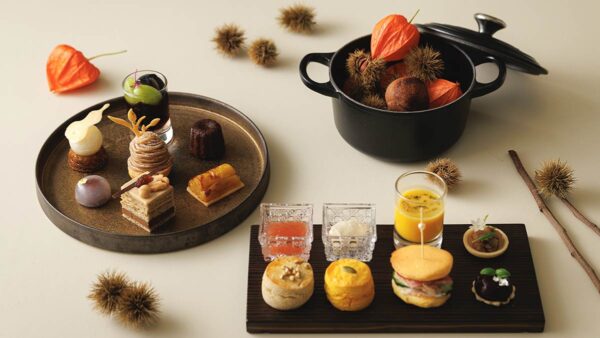 ザ・キタノホテル東京は、“For Comfort 快適さを求めて”を掲げ、東京で唯一のルレ・エ・シャトーのメンバーホテルとして、都会における上質なくつろぎを提供しています。くつろぎとは心身の健康なくしては得られないもの。宿泊や食事を、ウェルネスにつながる時間・体験にしたい。その一貫した思いのもと、館内の各ダイニングでは、おいしくて美しく “心身にやさしい食” をテーマに、食材選びのみならず、メニュー構成に至るすべてを考えています。オールデイダイニング「ティーラウンジ佳風」で、年間を通じて提供するアフタヌーンティーセットもそのひとつ。すべてのアイテムをグルテンフリーで仕立て、おいしさを損なわずに軽やかな味わいを実現しました。キタノに流れる和の文化も取り入れた、季節毎のシリーズの最新作は、ブドウや栗、さつま芋など季節ならではの食材がさまざまに表現され、五感で楽しめる「秋色のアフタヌーンティー」。