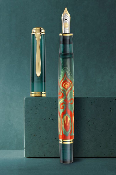 このモデルのモチーフは、1903年にドイツのアーティスト兼デザイナー、ルディ・ローザが手がけたインク広告ポスター。ペリカンはそのビジュアルを、現代の万年筆軸に宿らせる試みを続けています。
