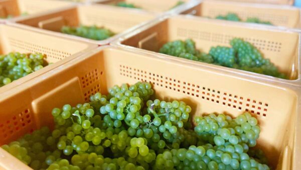 収穫の瞬間は、栽培チームにとって、1年間の集大成です。 毎日毎日、畑で向き合ってきたぶどうを送り出すとき、ひと房ひと房、丹精込めて仕上げられたぶどうは、収穫箱の中でどれも輝いて見えたといいます。
