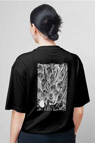 ・Tシャツ 『もろみ』に登場した、あの樽から飛び出す富江を、フロントに大胆にレイアウト。しっかりとした生地とゆとりのあるシルエットで、「わかる人にはわかる」カジュアルな着こなしが楽しめます。