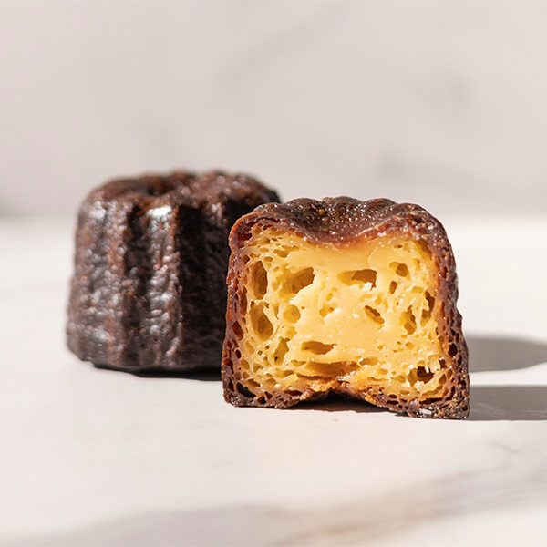 卵黄多めの生地を半日以上寝かせ、食感とコクを引き出しています。バニラとラムの風味がアクセントの自慢の一品です。手土産に最適な6個セットもご用意しております。