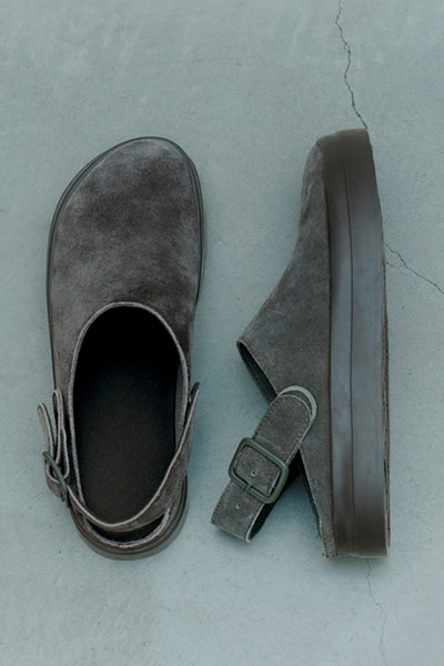 「レザー ヒールベルトクロッグシューズ」は、バルカナイズ製法で作り上げました。踵をホールドできるヒールベルト仕様です。