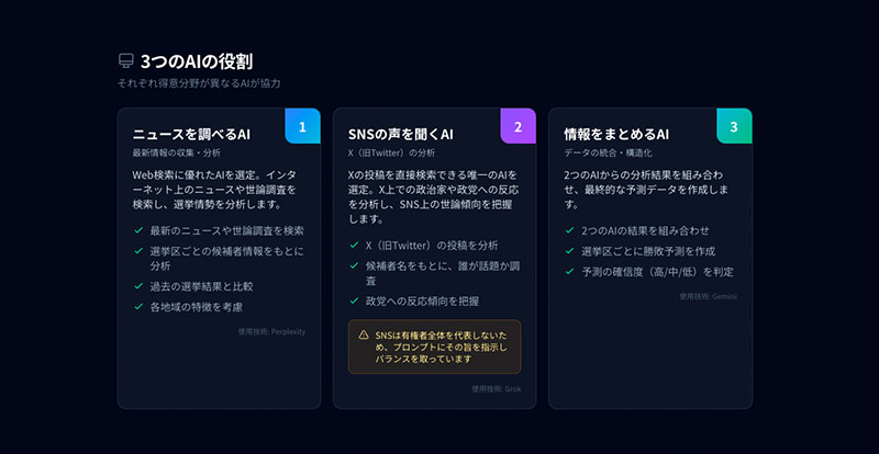 Perplexity、Grok、そしてGemini。3つの知性が連携し、プロンプト全公開で挑む「民主主義の可視化」