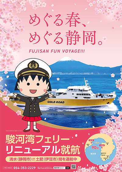 清水港と伊豆西海岸の土肥(とい)港を約75分で結ぶ「県道223(ふじさん)号」こと駿河湾フェリー。 この海のバイパスが、2026年2月14日(土)より、まるっと「ちびまる子ちゃん」の世界観にジャックされます。