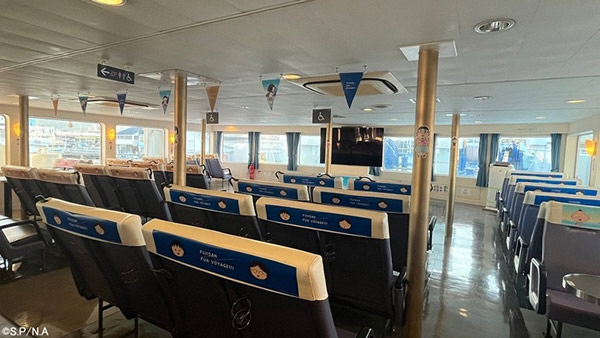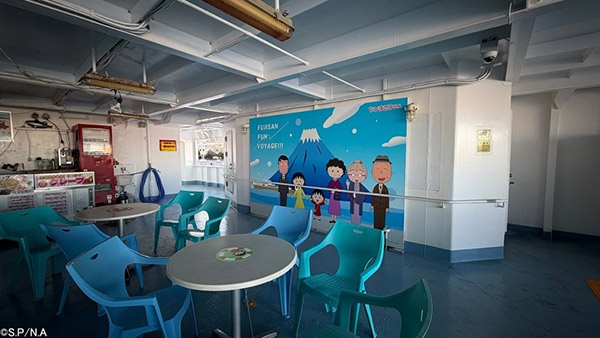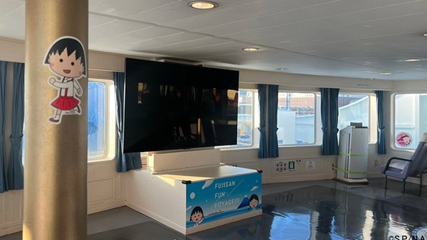 今回のコラボレーションは、単なるラッピング船ではありません。 乗船した瞬間から、そこはもう「ちびまる子ちゃん」の世界。船内のいたるところに可愛らしい装飾が施されているのはもちろん、ファンにはたまらない仕掛けが用意されています。