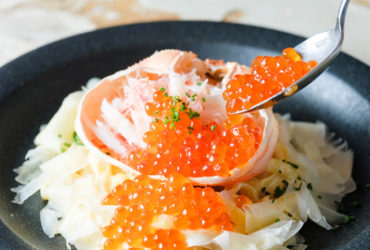 「ズワイガニ、いくらをたっぷりのせた炎のカルボナーラ」期間限定4900円→2900円で9月15日より新登場